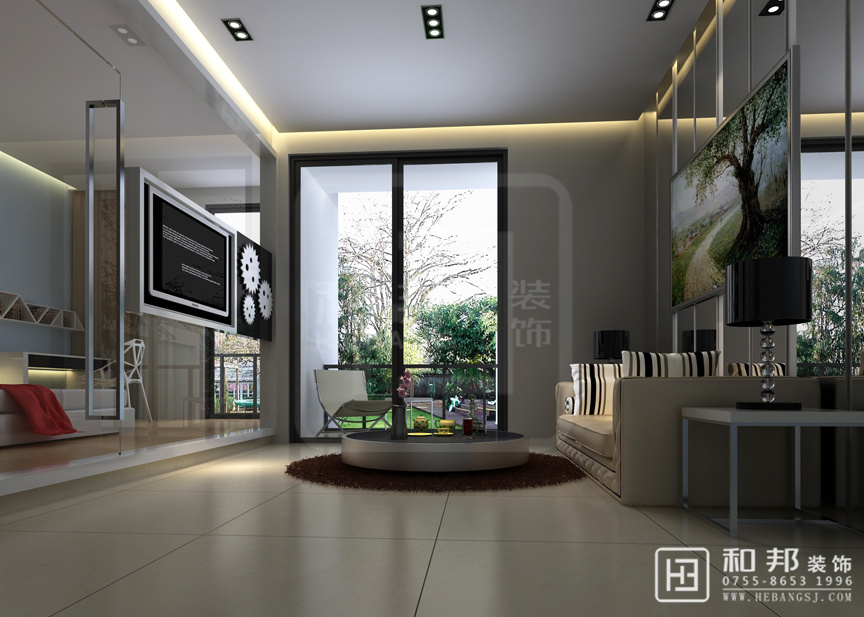 整體上看一切從簡設計,以簡約功能化為主,注重空間結構布局,但是沙發后面的那副畫又給整個空間添加了色彩,這種設計充分體現了簡約風格中又不失色彩感。